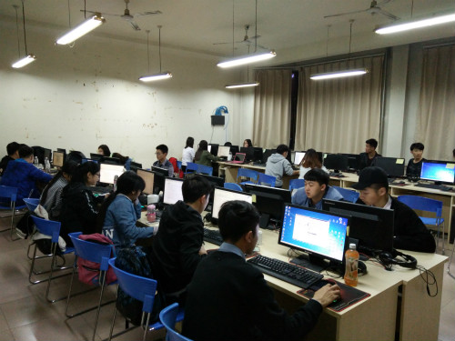 19日上午8点,比赛正式开始,以3人为一个小组的参赛队都是斗志昂扬,早早来到机房。比赛伊始,理学院机房中便充斥着各个小组用汗水敲打键盘的声音,队员们的讨论,合作无疑是他们赢得竞赛的利器。在炎热的天气中,每一组都在尽力编排属于自己的答案,查询资料,编写程序,整理论文,每个人都分工明确,竞赛有条不紊地进行着。值得一提的是,参与竞赛的小组之间也在互帮互助,积极讨论,帮助别人解决问题,彼此讨论思路,分享资源,帮助者也能从中学到很多。