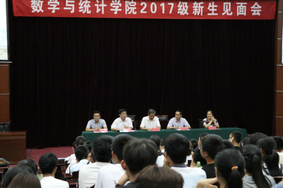 会议伊始,党总支副书记王仲孝介绍出席大会的学院领导。接着,全体师生起立进行奏唱国歌仪式。随后, 李功胜院长发表讲话,他着重介绍学院师资力量、学科及科研情况,并指出新生应树立新目标新理想,拥有正确的人生观与价值观,能够达到提升自我的标准。他讲到步入大学更应重视学习理念、使自己的素质能力缓慢提高,并强调需要尽快适应新的大学生活,把握人生方向。接着,优秀老师代表 曹永林讲话,他讲到三点,分别是做一个有理想、有管控能力、有学习能力的人,努力学好专业课知识,并表达了对数学与统计学院新生的热切期盼。随后,在校本科生代表发言他提出“放飞理想、见贤思齐”的理念。接着,17级新生代表发言,表达了自己的感想和对自我发展的决心与信心。随后,王仲孝对新生见面会进行总觉,并且对新生的发展寄予极大期望。最后,伴随着动听的校歌《你伴随我》大会落下帷幕。