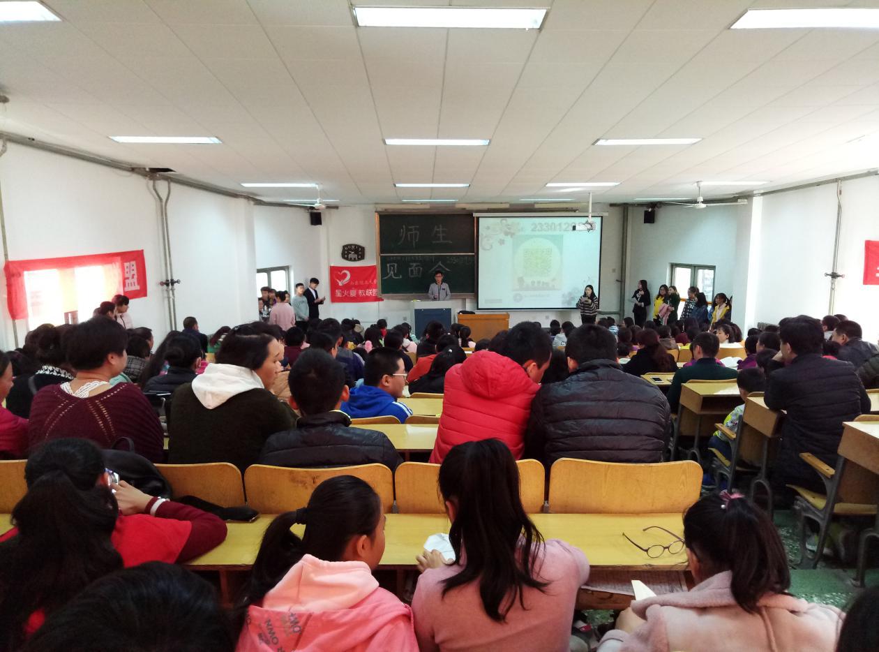 10月29日上午,数学与统计学院星火爱教联盟于15号教学楼103教室组织召开第十六届师生见面会。本次见面会由星火爱教联盟干事张悦颖主持,参加此次见面会的有数学与统计学院社团联合会主席李俊超、星火爱教联盟全体教员、马尚一中贫困学生及其家长。