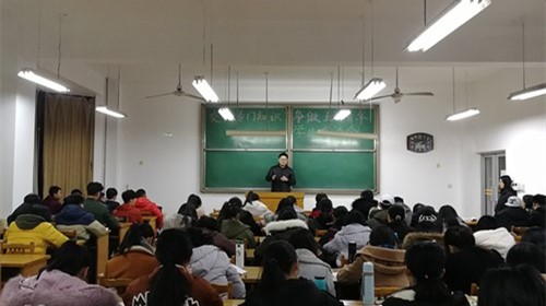 会议伊始,张林朋学长首先从如何学习、考研及保研两个方面入手深入浅出的向大家阐述了相关的内容,接着,张林朋学长结合自己的学习经验和心路历程勉励大家奋发向上,争做“五有”青年。随后,李俊超学姐发言。李俊超学姐不仅在学习上成绩突出而且还担任着院社联主席等职务。她鼓励同学们不仅要在学习方面有所作为还要多去参加各种社会实践活动从全方面提高自己,丰富自己的人生阅历,为以后在社会上立足打下坚实的基础。