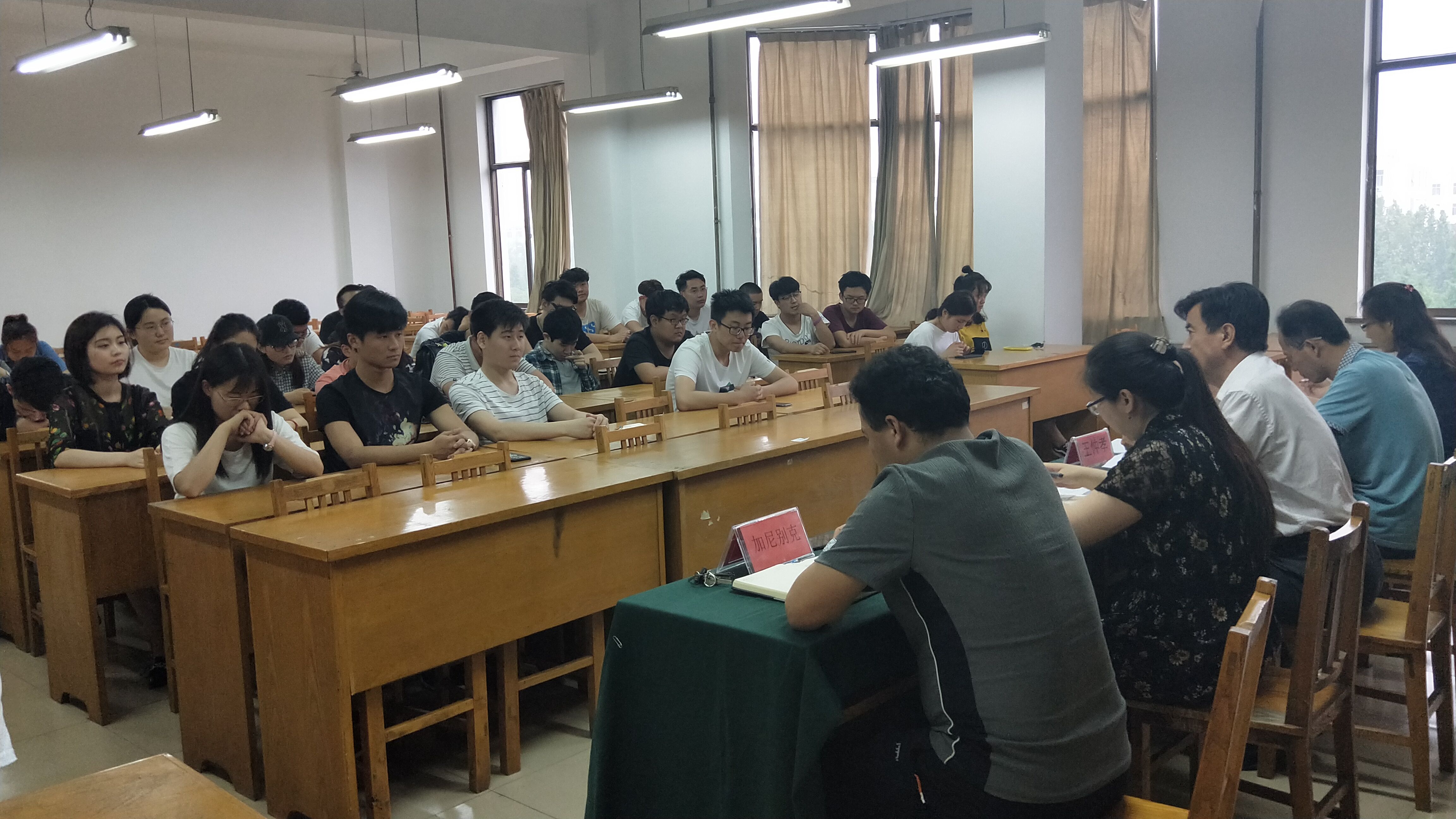 为进一步提高学生干部和宿舍舍长的责任意识和安全意识,数学与统计学院于5月17日下午,在15号教学楼431教室举行了学生干部及宿舍长会议,参加此次会议的人员有数学与统计学院党总支副书记王仲孝、团总支书记王婷,学工办辅导员王超、张丽姣、加尼别克、院学生会宿管中心全体成员、部分宿舍长和学生党员、学生干部。加尼别克老师担任主持人。