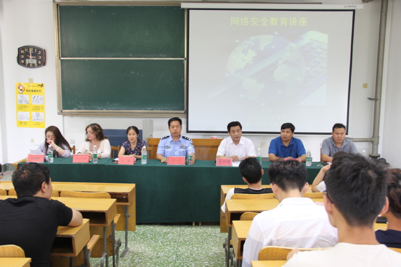 在互联网渗透生活点滴的时代,大学生的在校日常已经离不开网络。网络在提供信息化、便利化的同时,其透射的网络安全问题也引起了社会的普遍关注。为此,6月14日下午,77779193永利在15号教学楼103教室举办网络安全教育讲座,此次讲座参会人员有党总支副书记王仲孝、学区派出所副所长刘冲、学院辅导员加尼别克、新疆内派老师赵馨、吐鲁洪江、热孜万古丽、张雪晖以及17级全体宿舍长和所有新疆班学生,此次讲座由加尼别克主持。