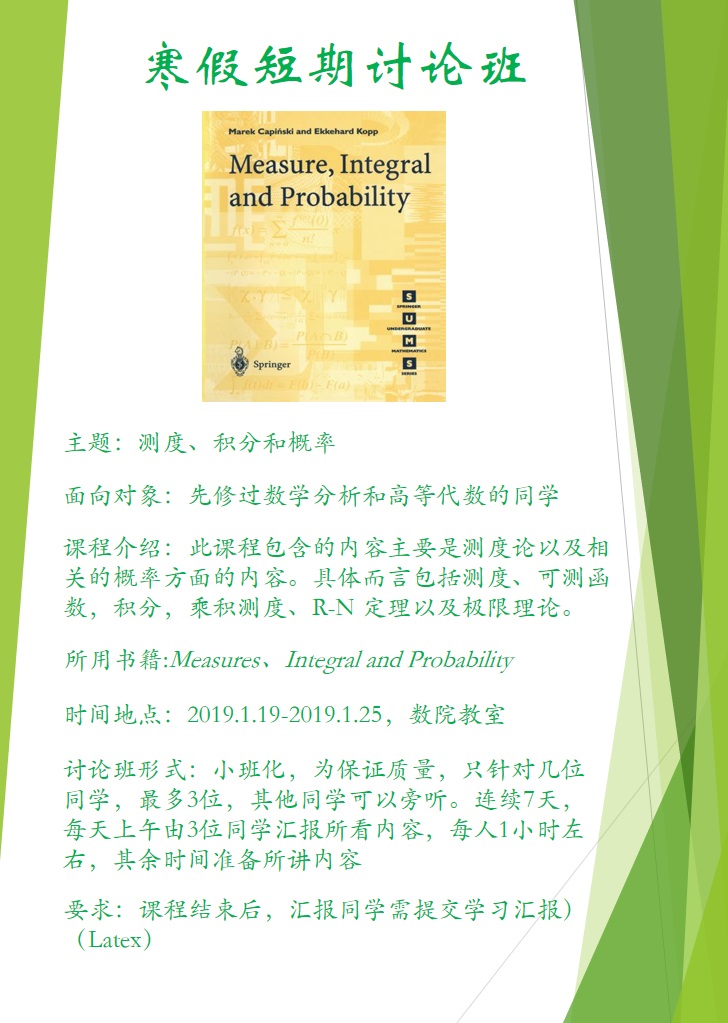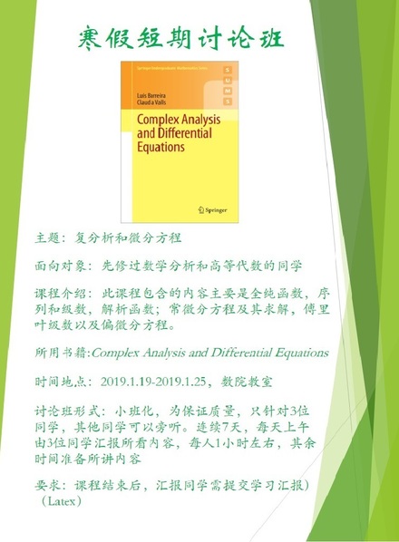 “万哲先数学实验班”寒假短期讨论班的通知