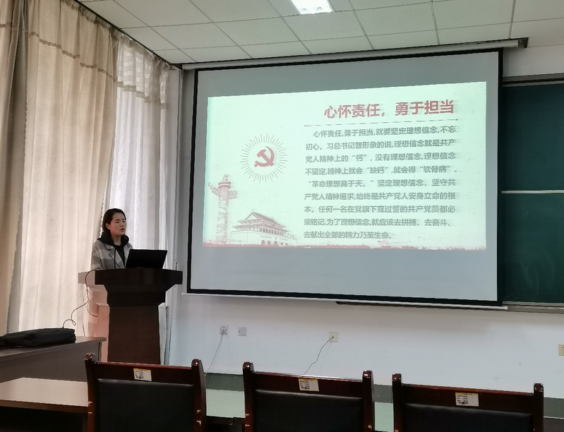 10月29日下午,我院学生第一党支部在430会议室由支部书记王凤璐讲授“心怀责任 勇于担当—做合格党员 ”主题党课,全体党员参加学习。