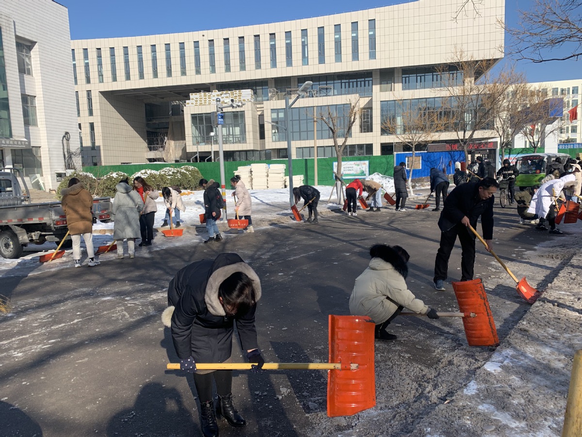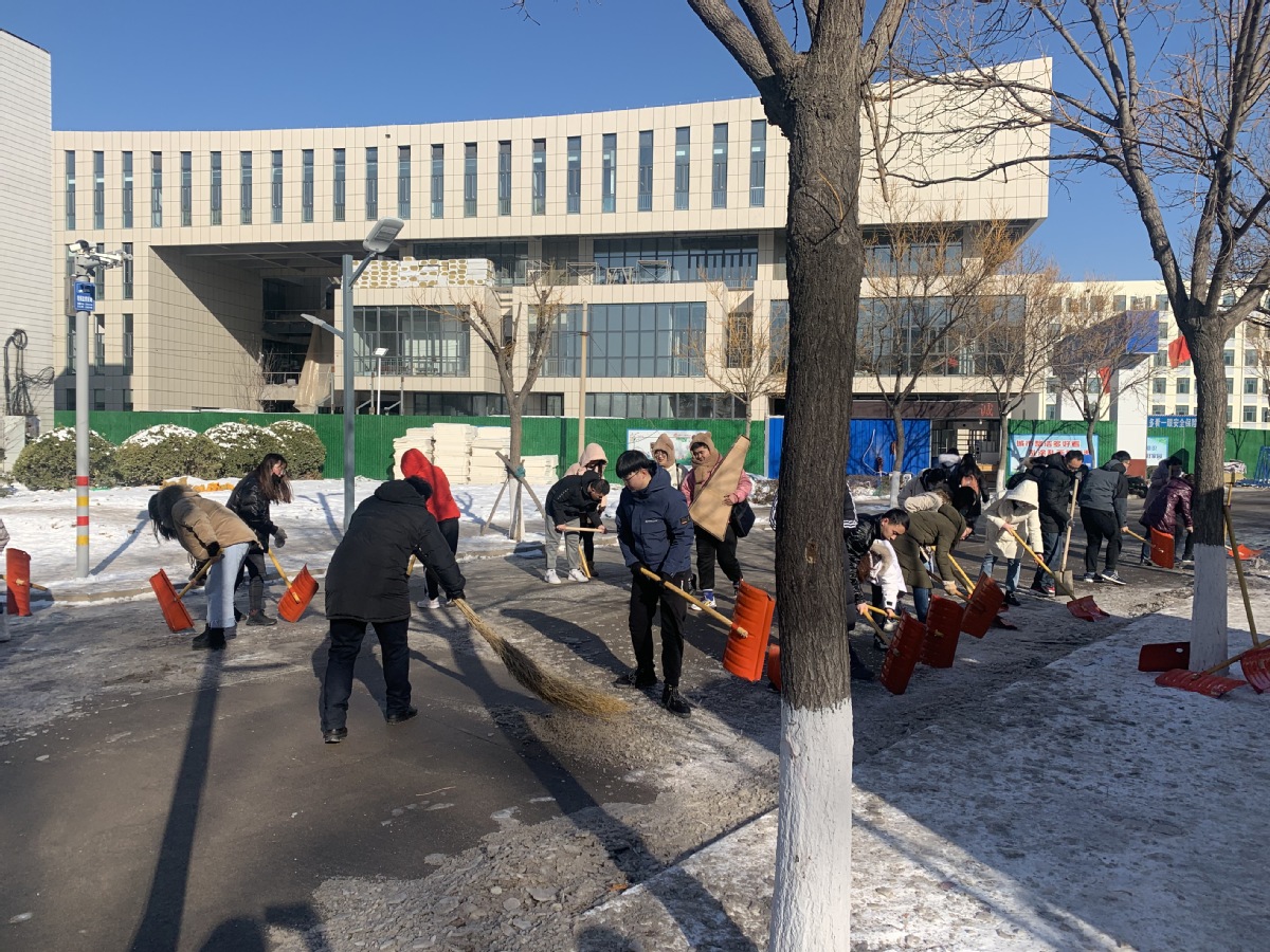 鹅毛般的飞雪铺满了整个校园,为了给学校师生的出行提供安全保障与便利,12月31日上午,我院领导组织师生党员共同开展铲雪除冰活动。