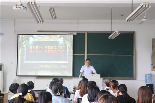 报告会第一阶段,2000级杰出校友,天津师范大学张新颜副教授带来了“关注数学本质,提升核心素养”主旨报告,以探究数学教育的两个转变为主线,提升了师范生对于数学本质认识,深化了对于数学核心素养的理解;1982级杰出校友,淄博市教研室朱恒杰教授做了“高考命题与数学思维的特点——高中数学‘面线点’瘦身复习法”为主题的报告,以高中数学“面线点”瘦身复习法为例子说明如何利用数学思维的特点提升学生的复习效率,启发师范生将来可从命题者的角度结合数学思维的特点进行教学;1982级杰出校友,桓台一中苏同安教授作了“静心教书,求教学之真,潜心育人,悟教育之本”的主旨报告,苏同安认为,教师应做一个达到“四有”标准的好老师,用辩证思维多角度研究数学教学的方法,让同学们深深地体会到数学的哲学、数学的魅力与数学的美学。数学系主任孙文华老师主持了本段报告。
