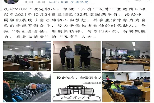 一个人有了目标,才有可能成功,没有目标的人就只有面对失败,有目标的人才可能去面对成功。部分团支部组织同学详细写下自己的大学目标与人生理想,并鼓励要坚定信念,为之不懈奋斗,努力争做“五有”人才,努力争做能担当民族复兴大任的时代新人,为学校发展、国家富强贡献自己的力量。